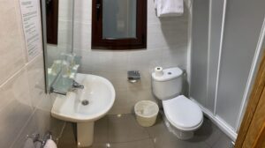Dieses Zimmer schaut nicht auf die Straße; das Fenster schaut auf einen Lichtschacht. Zimmer ist mit privatem Badezimmer (mit Dusche) und kostenlosen Toilettenartikeln ausgestattet.